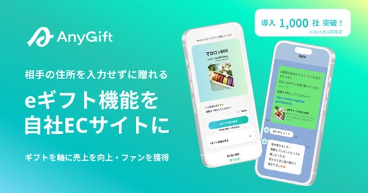 『AnyGift(エニーギフト)』は、相手の住所を知らなくてもLINEやメールで贈れる"eギフト機能"を、自社ECサイトに組み込み・導入ができるサービスです。