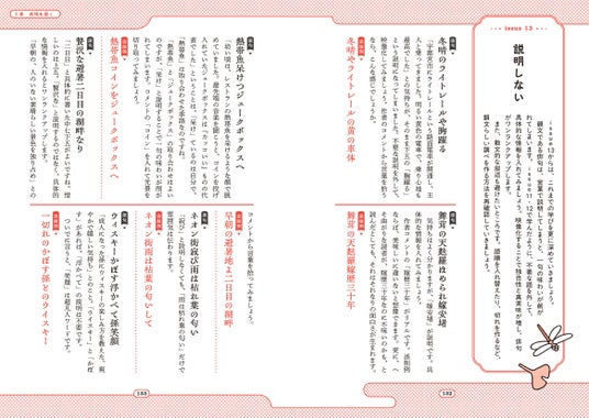本書では、「季語がない」「字余り・字足らず」「助詞の使い方」「切れ」「凡人ワード」「説明しない」など、俳句で頻出するミスを項目別に整理。気になる項目から引ける構成で、初心者の疑問解消から、経験者の推敲まで幅広く活用できる“添削事典”です。