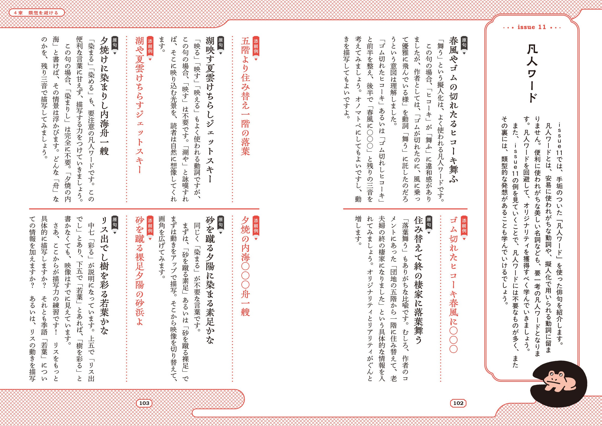 原句と添削例を対比しながら、〈どこを、どう直すのか〉を具体的に示すことで、俳句の「直しどころ」が自然と身につく構成になっています。