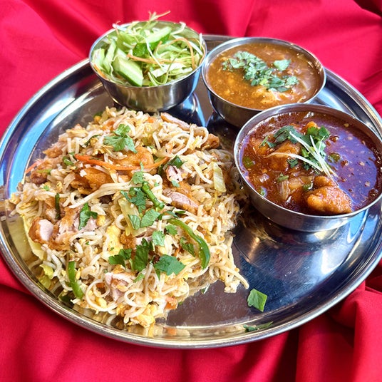 チョウミン セット(Chow Mein Set)インドで親しまれている中華料理「インド中華」を一皿で楽しめるセット。焼きそばをメインに、ここでしか味わえない個性あふれる味わいを一度にお楽しみいただけます。