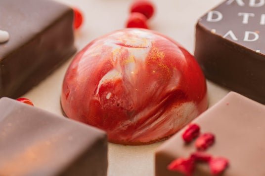 (手前から)ミントビター、オレンジピール&パッションガナッシュ、ピンクペッパー、ビターガナッシュ、苺&ミルク