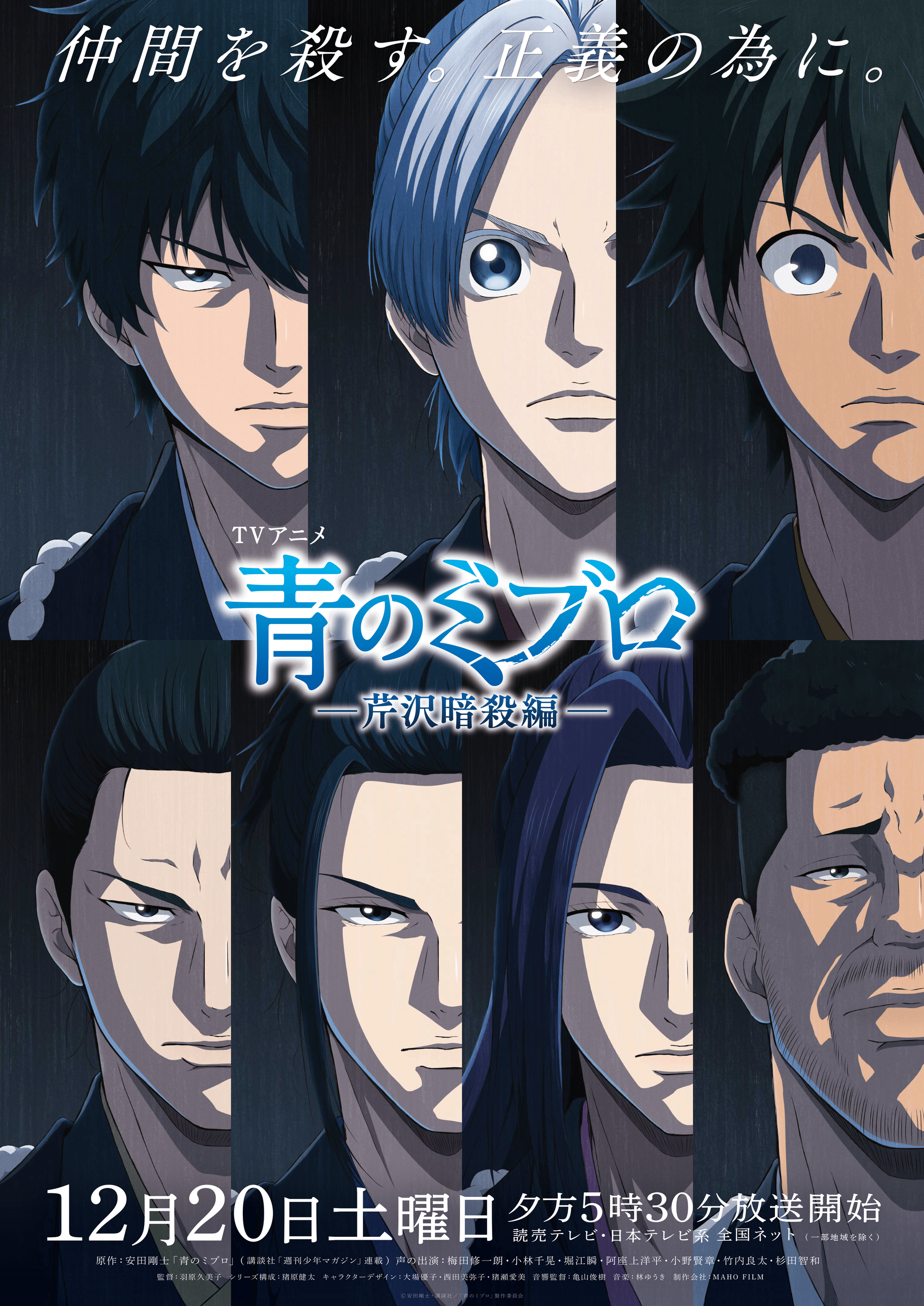 TVアニメ『青のミブロ』第二期”芹沢暗殺編”は、読売テレビ・日本テレビ系全国ネット土曜夕方5:30枠にて放送中。原作は安田剛士先生の『青のミブロ』(講談社「週刊少年マガジン」)で、現在『青のミブロー新選組編ー』を連載中です。