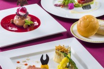 コーンの上のアイスクリームのような部分は紫イモのマッシュポテト。