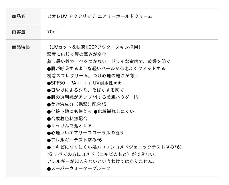 ■ビオレUV「アクアリッチシリーズ」の新作『ビオレUV アクアリッチ エアリーホールドクリーム』