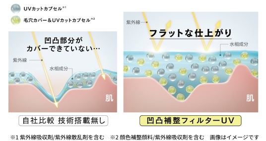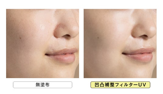 ●肌の凹凸をフラットに補整し、細部まで強力UVをカット