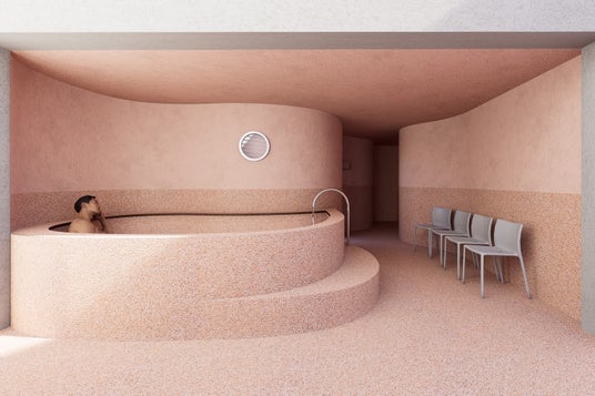 象徴的な銭湯絵モザイクタイル、かつて存在した曲面天井といった「過去の断片」の上に新たなレイヤーを重ねていった。