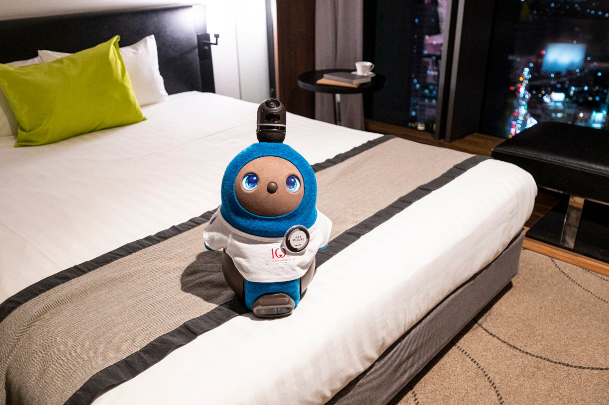 本宿泊プランでは、癒しとかわいさを届ける 『LOVOT』の「ミズキ」が滞在中はあなただけの癒しの相棒として寄り添います。地上130メートルから望む高層階からの景観と『LOVOT』の愛くるしい表情や動きに癒される、ここでしか味わえない心ほどけるひとときをお過ごしいただけます。さらに60種類以上を取り揃えた朝食ブッフェ付き。お腹も心も満たされる、1日1室限定のプライベートステイです。