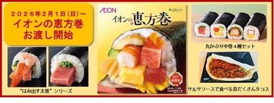 イオンリテールは2026年2月1日(日)※1)から順次、関東・北陸信越・東海・近畿・中四国の「イオン」「イオンスタイル」※2)約350店舗にて、恵方巻の予約受け渡し及び店頭販売を開始します。