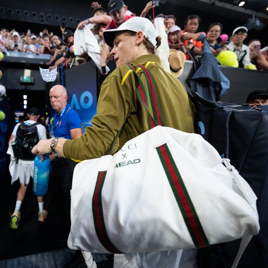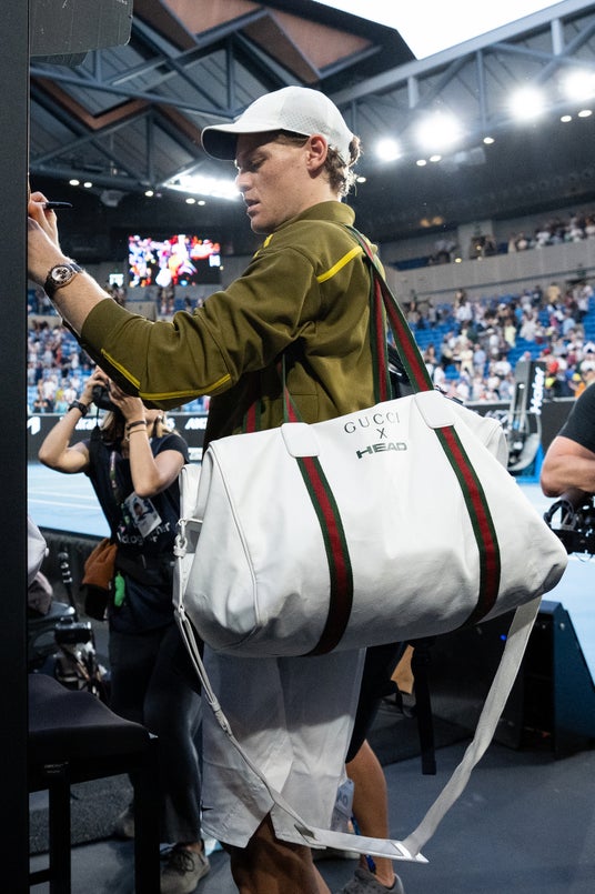 グローバル・ブランドアンバサダーのヤニック シナーは、2026年1月26日、メルボルン・パークで開催された2026年全豪オープンにて、HEADによって製作され、グッチがデザインを手がけたカスタムのダッフルバッグを携えて登場しました