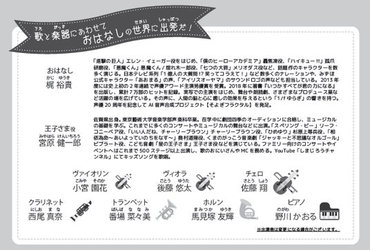 アニメ「進撃の巨人」エレン・イェーガー役で知られる声優の梶裕貴さんが朗読を担当し、佐賀県出身の俳優・宮原健一郎さんが王子さま役を演じます。