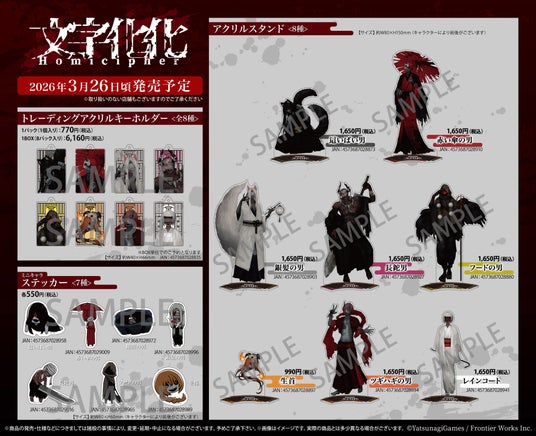 株式会社フロンティアワークス(本社:東京都板橋区 代表:辻 政英 以下:「フロンティアワークス」)は、2026年3月26日(木)より、アニメイトにて開催される「文字化化」フェア in アニメイトにて、描きおろし絵柄キャラ8体を使用した新商品を発売いたします!