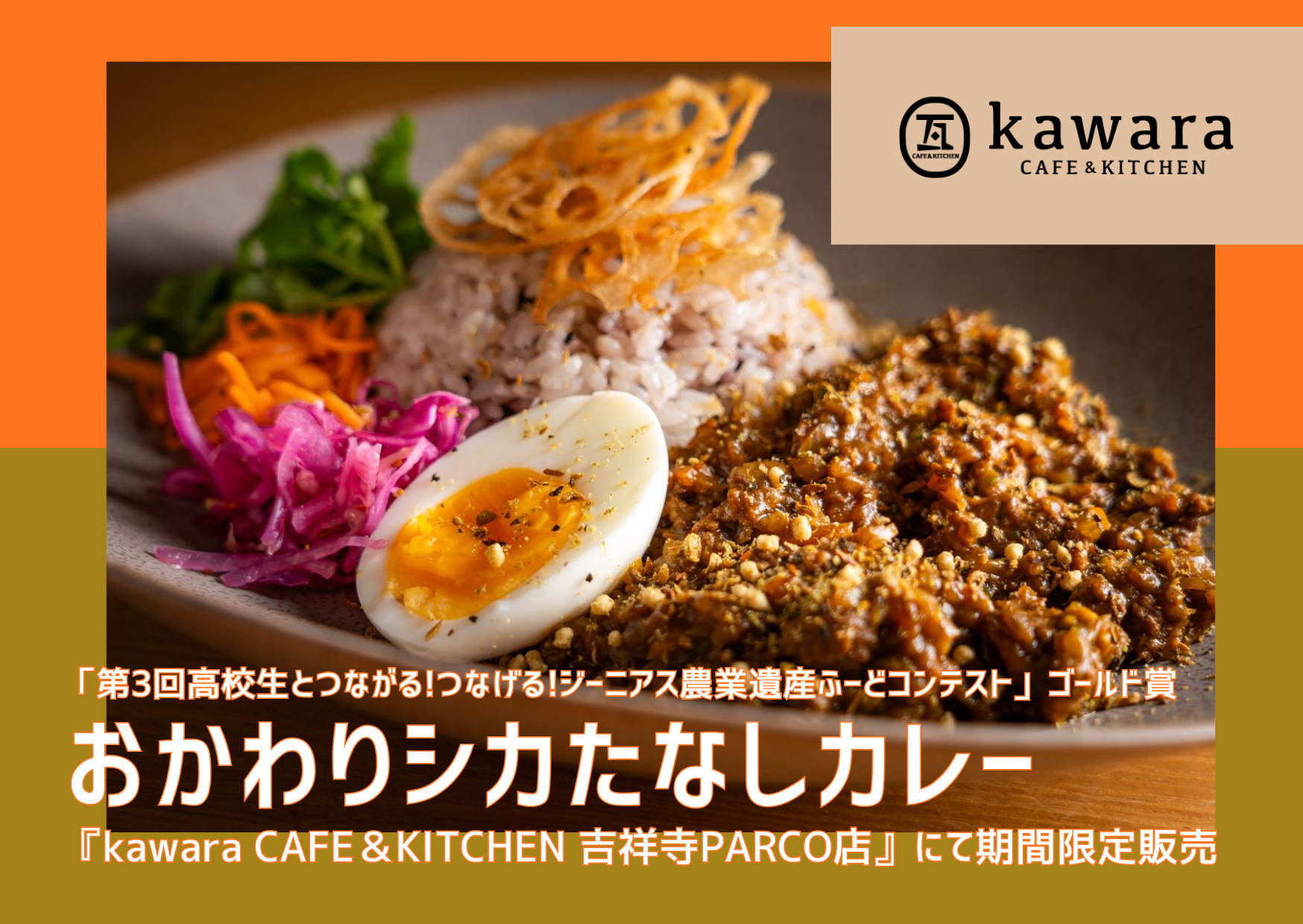 『kawara CAFE&KITCHEN 吉祥寺PARCO店』でおかわりシカたなしカレー」をお召し上がりいただき、農業遺産地域を一緒に盛り上げましょう。