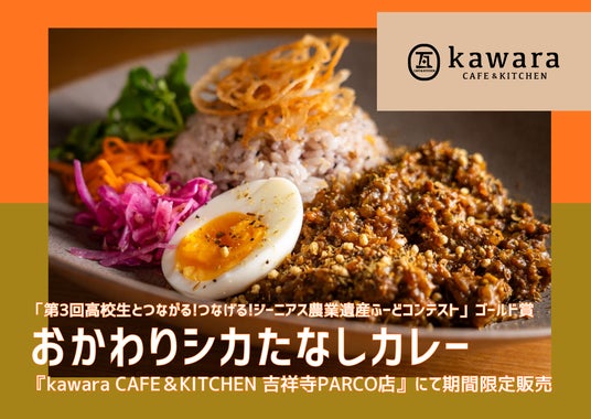 株式会社DDグループの連結子会社である飲食事業やコンテンツ企画サービスを展開する株式会社エスエルディー(本社:東京都港区、代表取締役社長:有村 譲)が運営する、日本のアーティスト作品に彩られたデザイナーズ空間でランチからカフェ、ディナーまで楽しめるカフェ・ダイニング『kawara CAFE&KITCHEN 吉祥寺PARCO店(カワラカフェ&キッチン キチジョウジパルコテン)』では、2026年2月2日(月)~2026年2月28日(土)の約1か月の期間限定で「第3回高校生とつながる!つなげる!ジーニアス農業遺産ふーどコンテスト」ゴールド賞受賞アイデアメニューおかわりシカたなしカレー」をご提供いたします。