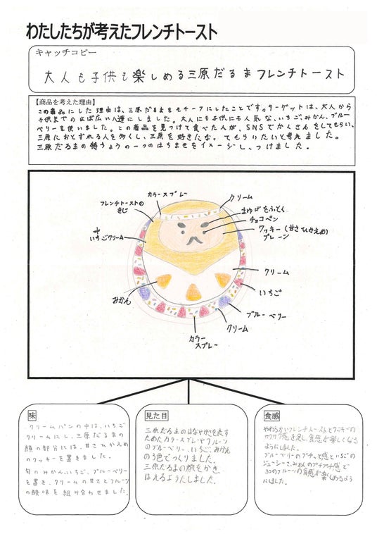 児童考案「大人も子供も楽しめる三原だるまフレンチトースト」