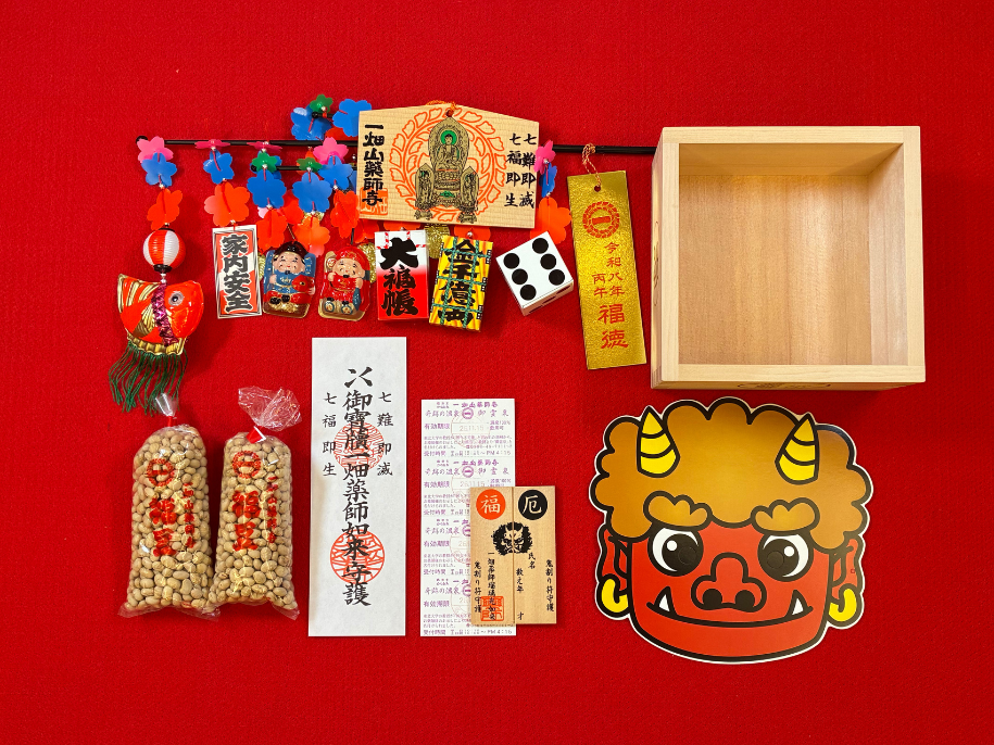 福豆や福桝はもちろん、福笹やお札、鬼面などが揃っており、ご自宅で一年の厄払いと豆まきを行なっていただけます。なお、ネット別院からもお申込みいただけます。