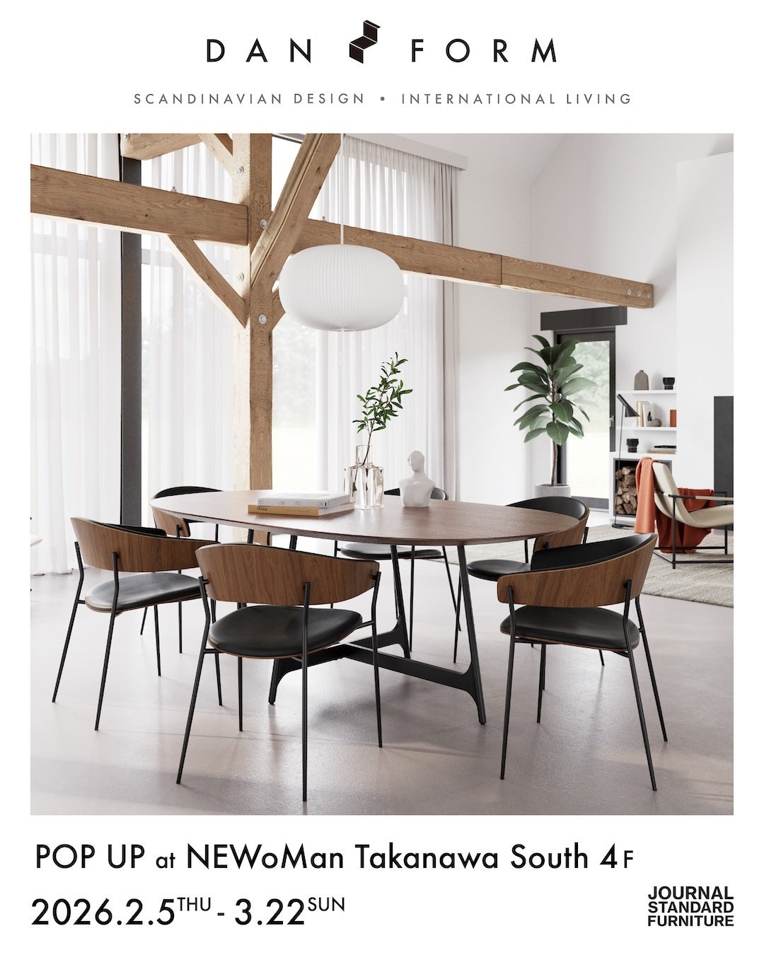 「JOURNAL STANDARD」や「IENA」など、衣食住美を展開する株式会社ベイクルーズ (本社:東京都渋谷区) の JOURNAL STANDARD FURNITUREは(以下、JSF)、NEWoMan 高輪店におきまして、デンマークのインテリアブランドDAN-FORM(ダンフォーム)のポップアップ イベント【新生活を彩る、北欧デザインのある暮らし】を2月5日(木)~3月22日(日)の期間で開催いたします。