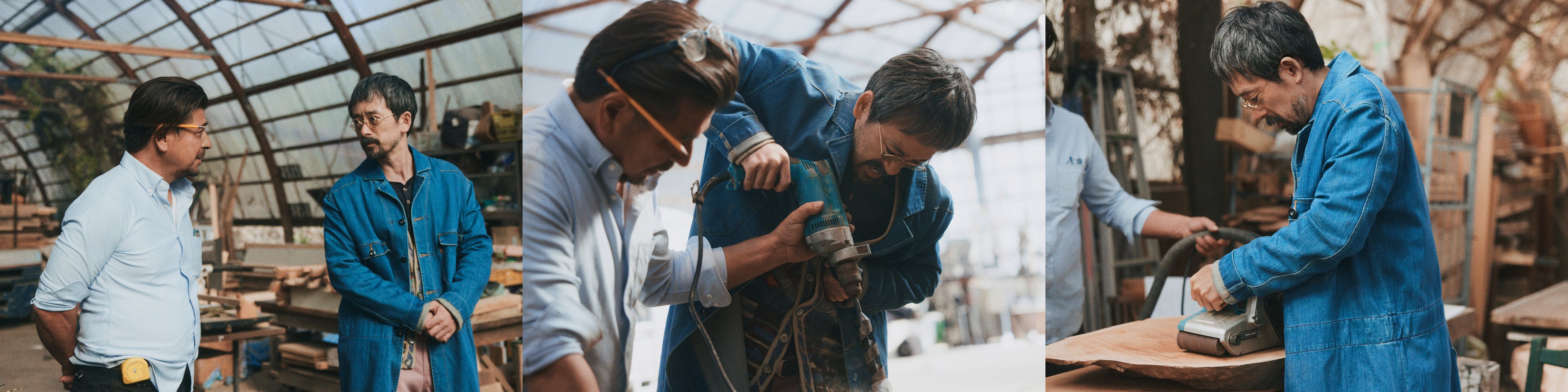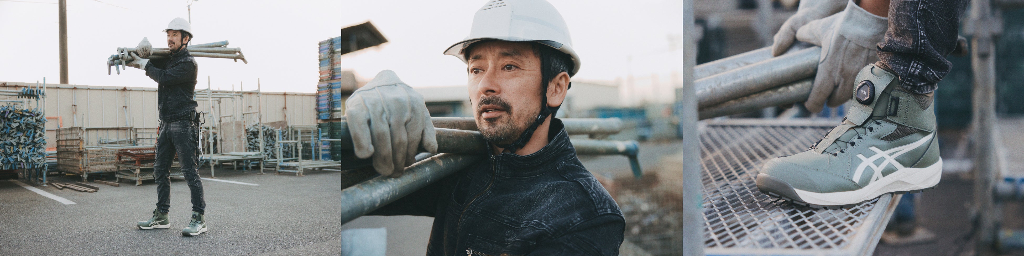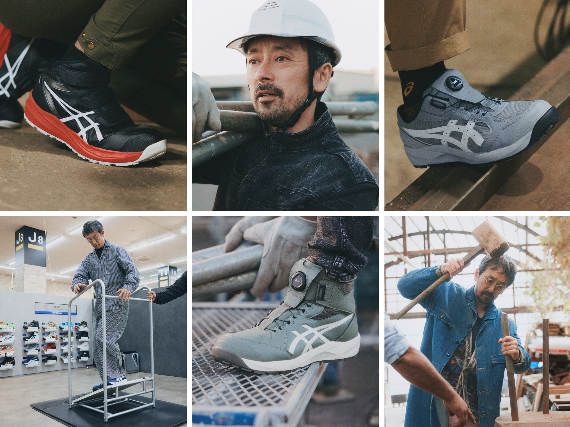 新作ワーキングシューズを履いて、建設業、製造業、木工業の職人になり、リアルさを追求。