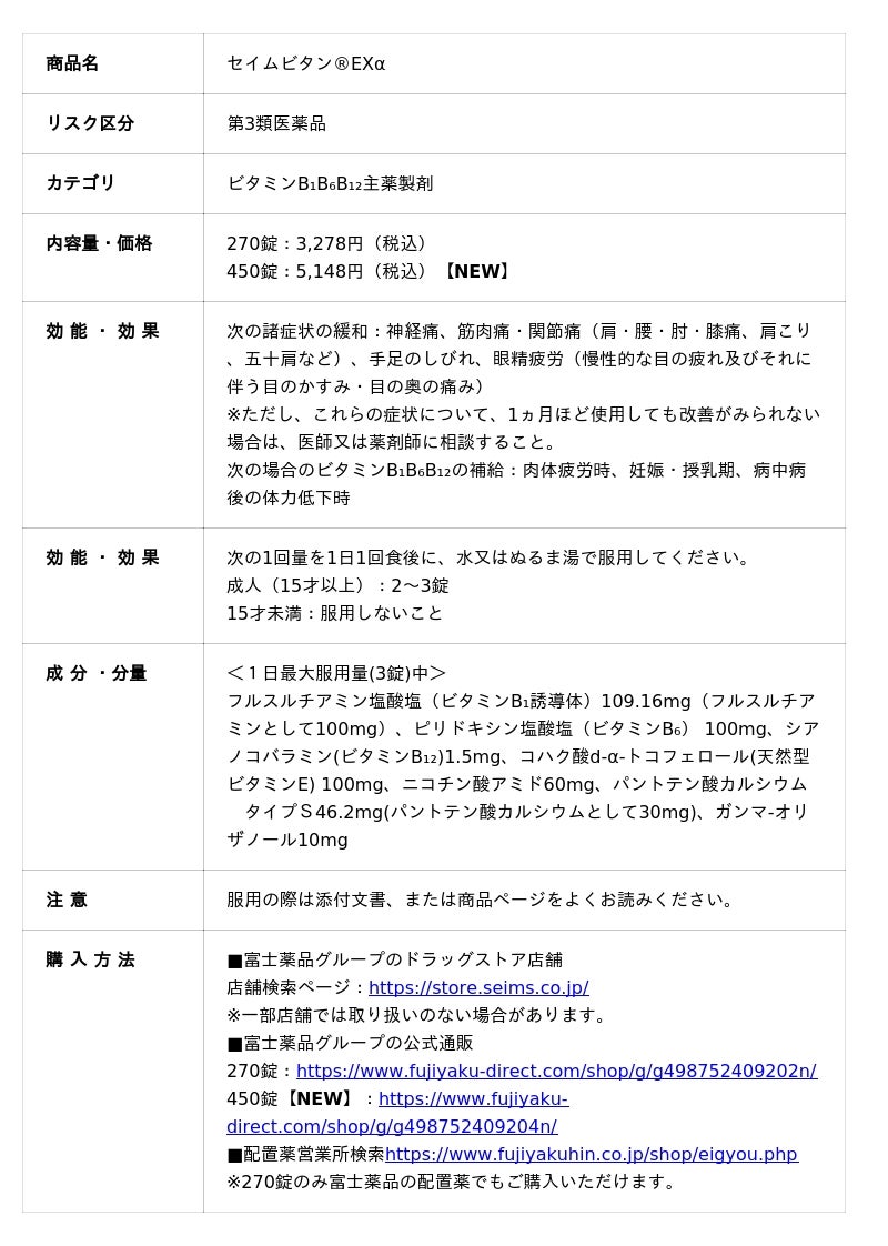 ※1:「セイムビタン(R)EXα」発売のプレスリリース(URL:https://www.fujiyakuhin.co.jp/news/11389/)