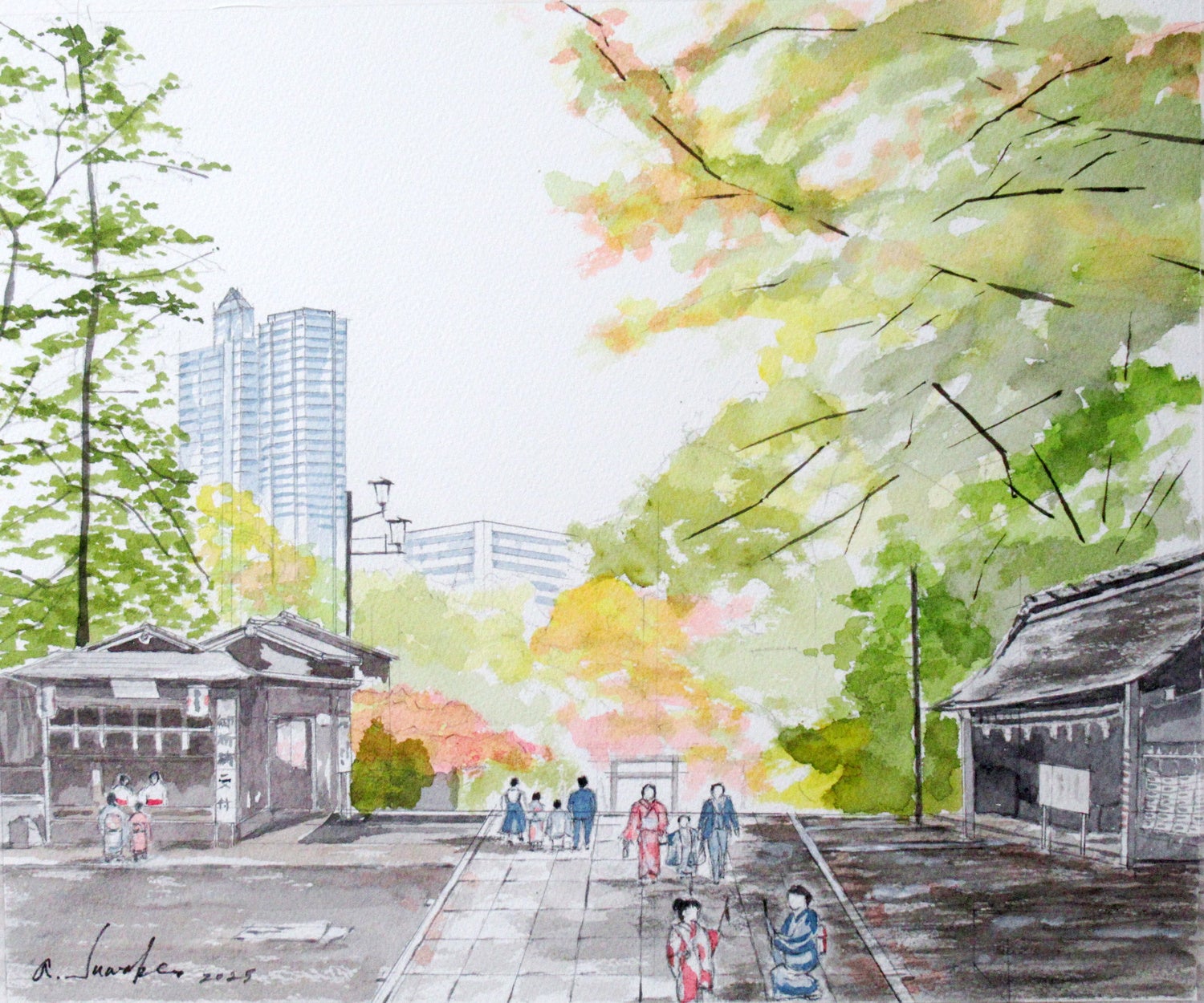 【作品コンセプト】所沢にはいくつも魅力がありますが、野老澤神明社からの景色もそのひとつです。初詣、七夕祭り、初宮詣、七五三など人々が集い心を繋ぐ場となっております。また神明社から見える所沢の街には、新しい高層マンションなども見え「人々との繋がりと更なる発展」を感じます。