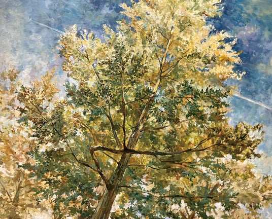 【作品コンセプト】私は普段「流れ」というテーマを軸に、山や川などの自然物をモチーフとする作品を制作しています。本作は所沢の「自然」をモチーフにした作品で、所沢の移ろう自然の空気を描こうとしています。また本作は三作品の連作となっており、他に所沢の街、空を描いたものが2点、ロビーにて展示されています。