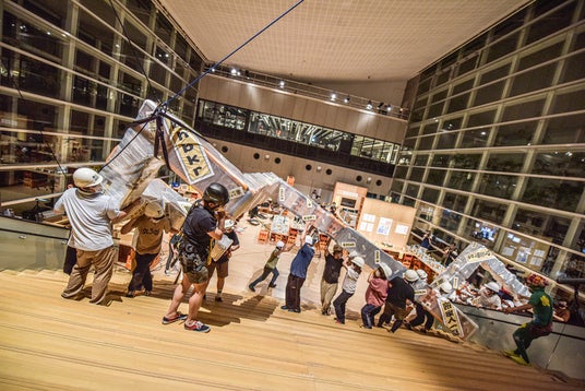 1.世界を巡った『搬入プロジェクト』がついに故郷・倉敷へ建物の形状に合わせ、「絶対に入らなそうなのに、計算上ギリギリ入る」巨大な物体を、約20名~30名の参加者の手で運び込みます。スリルとユーモア、そして圧倒的な一体感を生む伝説的パフォーマンスが商店街を舞台に展開されます。