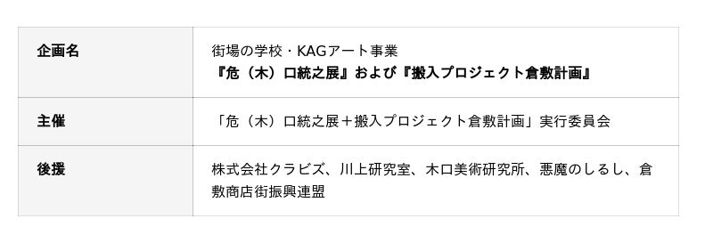「危(木)口統之展+搬入プロジェクト倉敷計画」実行委員会担当:木口賀之