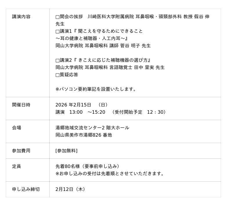 ※本セミナーは、難聴に関する理解促進を目的としており、特定の製品を宣伝したり、特定の製品に関する具体的な情報を提供したりすることを目的とするものではありません