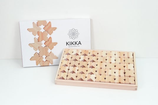 「KIKKA」は、日本有数の銘木として知られる吉野桧を使用した知育積み木です。独自設計による多面体構造により、単に積み上げるだけでなく、斜めにしたり、組み合わせたり、はめ込んだりと、多様な遊び方ができる点が特長です。遊ぶたびに新たな発見や工夫が生まれるよう設計されています。