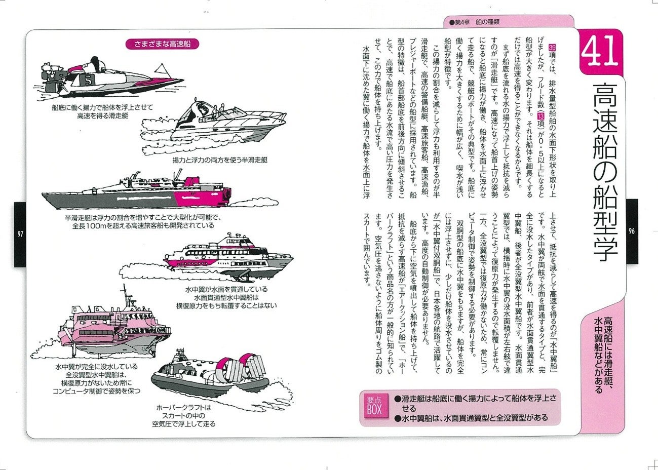 船舶工学研究の第一人者である著者が、船舶のしくみと種類、力学、推力、造船のプロセスなどを、豊富なイラストや写真を使い、実際例を随所に取り上げてわかりやすく解説しています。初版の内容を全面的に見直すとともに、1.船舶用の新燃料、2.巨大クルーズ客船、3.国と人を守る軍用船、4.特殊用途に用いられる船舶、5.高速で航行するための船型学などの最新情報を収録しました。