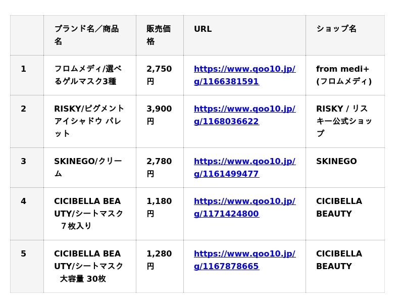 URL:http://www.qoo10.jp/