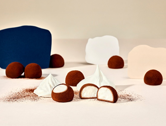 ガナッシュ、生地、サブレという独自の3層構造にアクセントのトッピング素材をあしらったフォンダンショコラです。