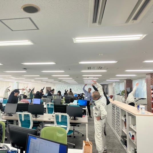 赤穂事業所内でのラジオ体操赤穂事業所内では、1993年から業務開始前に任意で参加できるラジオ体操を流し、各々やりやすい場所で実施しています。ラジオ体操が始まらないと業務が始まらないと感じてしまうほど習慣化している活動です。仕事のエンジンをかける役割も果たしており、頭の切替えと同時に身体を動かす事によりスッキリと業務に取り組むことができ、業務の生産性や創造性向上に繋がっています。