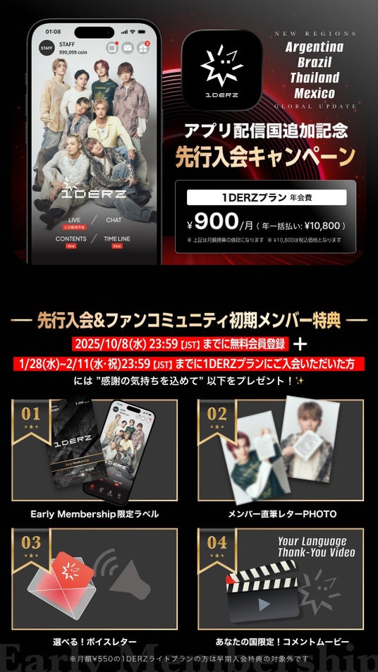 アプリの配信国追加を記念して、2月11日(水)23時59分まで、初期会員を対象とした先行入会キャンペーンを実施しています。
