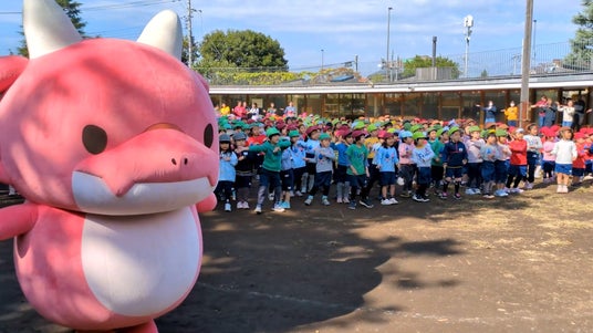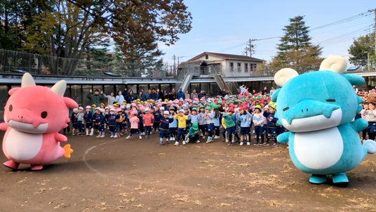 2025年秋某日、立川市を代表する私立幼稚園「ふじようちえん」に全園児約650名と“めら”“ぐーすか”が大集合!先生達も巻き込み、みんなで『かいじゅうたいそう』を楽しみながら踊る様子が撮影されました。