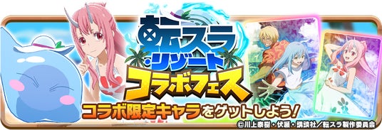 本コラボを記念して、『劇場版 転生したらスライムだった件 蒼海の涙編』をモチーフにしたコラボモンスター、ネンドロ種「リムル・リゾート」、キュービ種「シュナ・リゾート」、コラボアシストカード「【波乗りテンペスト】リムル&ヴェルドラ」、「【陽だまりの巫女姫】シュナ」が手に入るガチャイベント「転スラ・リゾートフェス」を開催します。「転スラ・リゾートフェス」では、★3モンスターの出現確率が15%→20%にアップします。【期間】2026年1月31日(土)15:00~2月28日(土)14:59