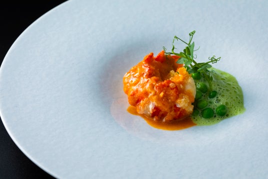香ばしく揚げたオマール海老に、グリーンピースのやさしい甘みと甲殻類の旨味を凝縮したナンチュアソースを添えた、春らしい軽やかさと贅沢さを併せ持つ魚介料理に仕上げました。
