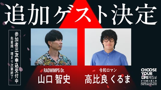 「Choose Your Life! それでもなお、人生は選べる。」をスローガンに掲げる一般社団法人HASSYADAI social(代表:勝山 恵一・三浦 宗一郎、以下ハッシャダイソーシャル)は、2026年3月19日(木)LINE CUBE SHIBUYA(渋谷公会堂)にて開催する「CHOOSE YOUR LIFE FES ’26 #18歳の成人式」の出演ゲスト第2弾として、令和ロマン・くるまとRADWIMPSドラマー・山口智史の出演が決定したことをお知らせいたします。