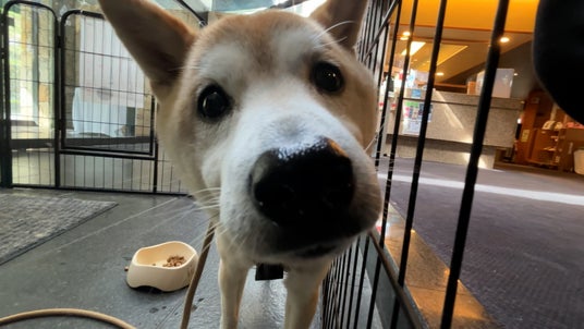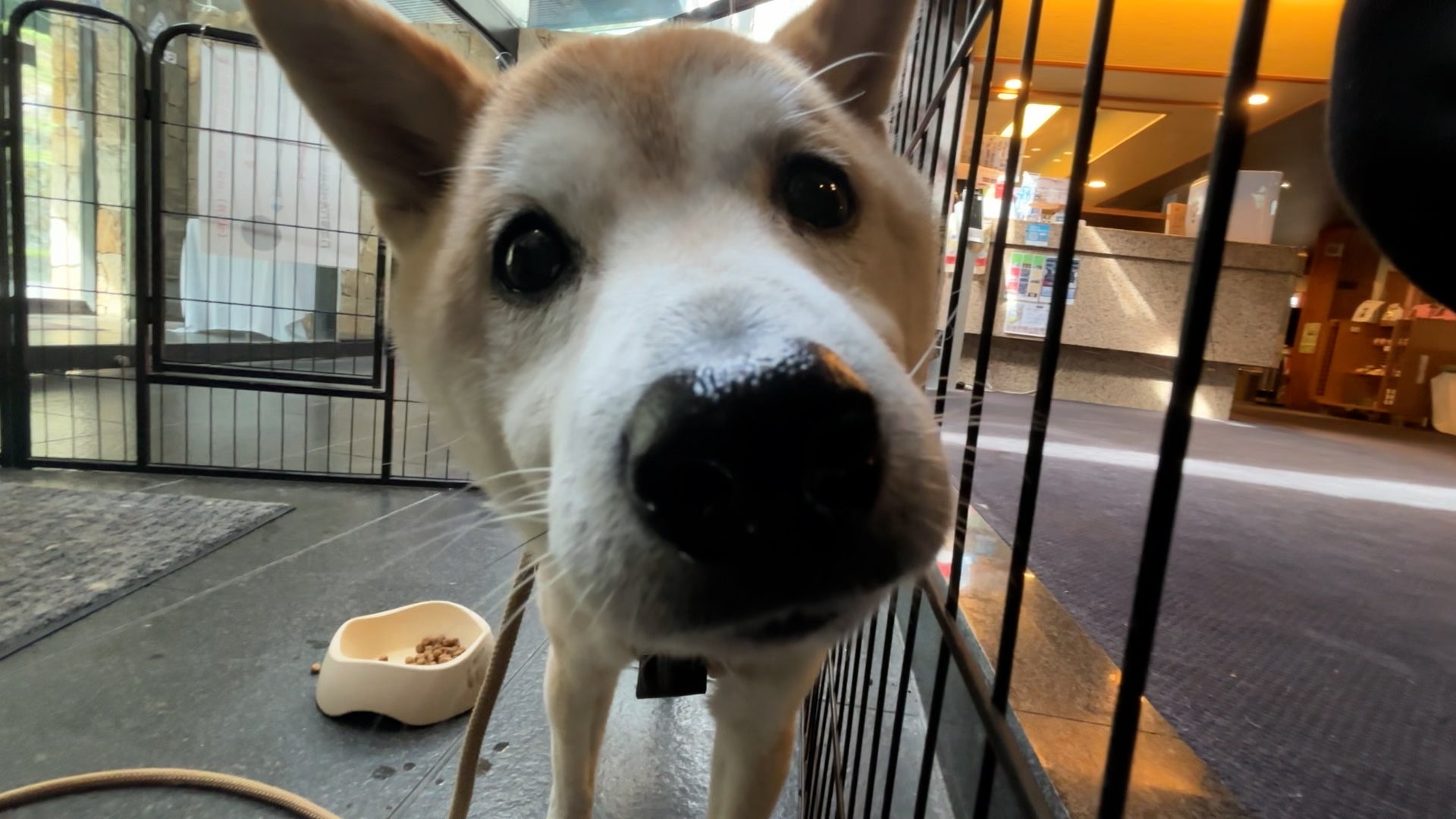 柴犬の「さくらちゃん」!宿の看板犬として、お客さんを見守る癒しの存在です。14歳と高齢ですが、犬鳴山温泉にはもう1人、外せない高齢のレジェンドがいるのです!