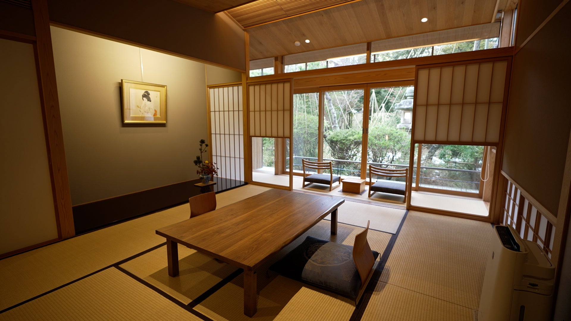 「みやこわすれ」をテーマに都会の喧騒から離れて、静かにゆっくり過ごせることをテーマにした宿では、従来の概念を覆すほどゴージャスな客室露天風呂など、館内の随所で贅沢さを味わえます。
