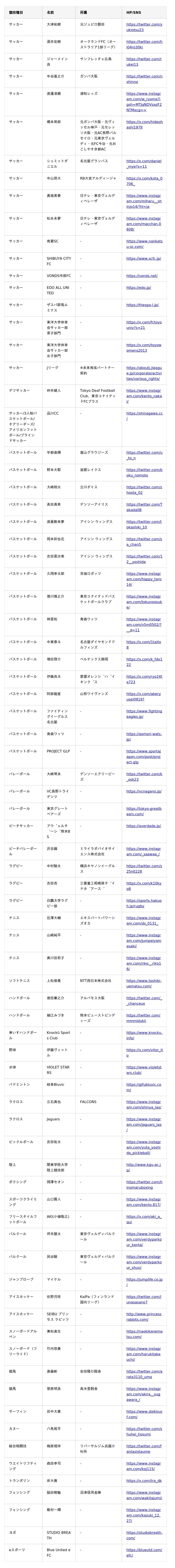 <BASE UP SPORTS サプライヤー契約一覧(現時点)>