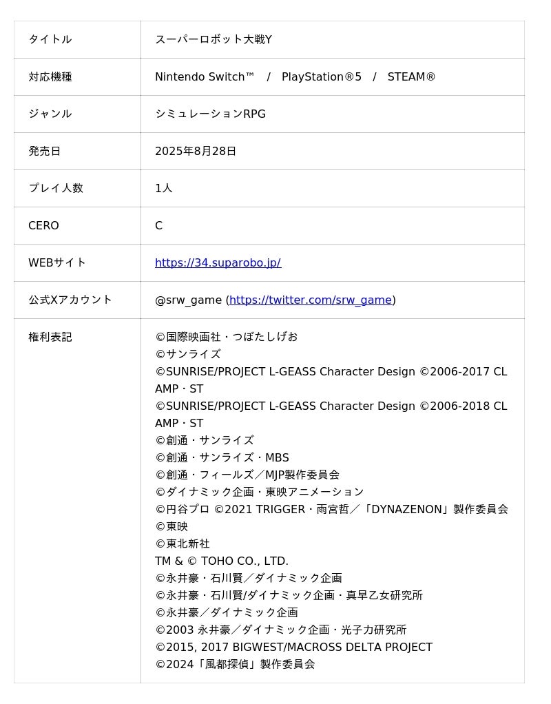 家庭用「スーパーロボット大戦」シリーズ最新作『スーパーロボット大戦Y』のDLC2.の配信日が2026年2月6日(金)に決定いたしました。