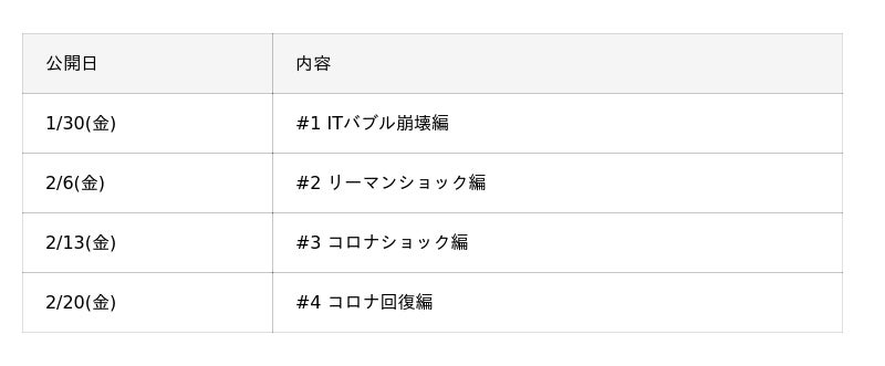 #1のテーマは「ITバブル崩壊」です。2000年代初頭、インターネット関連企業の株価が異常な高騰を見せた後、一気に暴落した激動の時代を取り上げます。