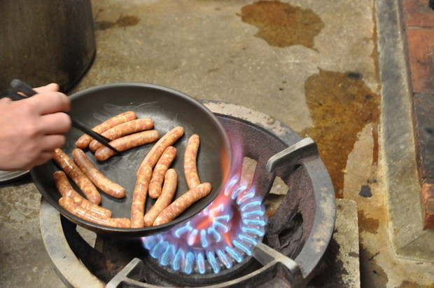 仕込み用のガス台(ゴトク)を使って炒める。