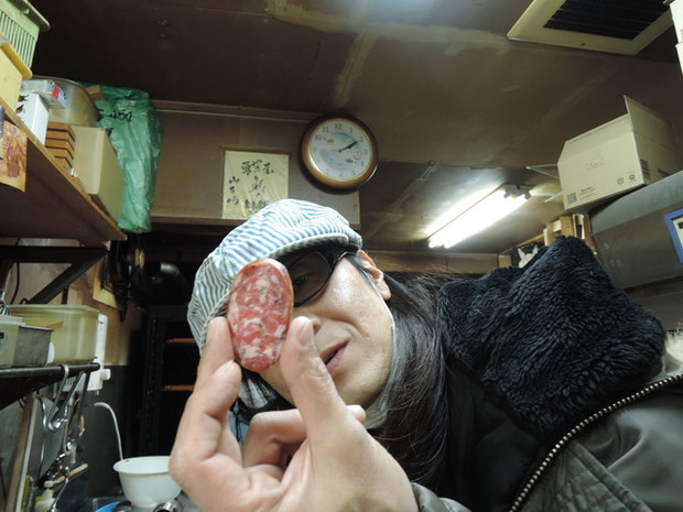 熟成する前のサラミソーセージも試食。