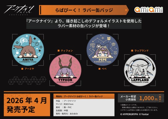 フィギュア&ホビー通販大手の「あみあみ」を運営する、大網株式会社(本社・東京都文京区)は、『アークナイツ 6th Anniversary Fes.「Continuum」』で販売された「オペぬいEX マドロックの巨像」「らばぴーく! ラバー缶バッジ」「らばぴーく! ひっかけアクリル」「マスコットラバーキーホルダー」「危機契約 書類ケース #3浄罪」を、2026年4月予定で発売いたします。
