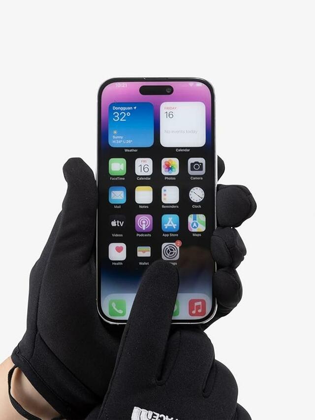 タッチスクリーン対応のため、グローブを外さずにスマートフォン操作が行えます。自転車やバイクの停車中やベビーカーやドッグカーでのお出かけ中、位置情報や天候確認をしたい時に便利ですよね。