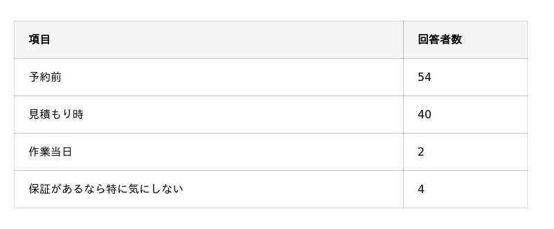 - エアコンクリーニングでの保証内容は遅くとも見積もり時までには知っておきたいと考えるユーザーが多い。