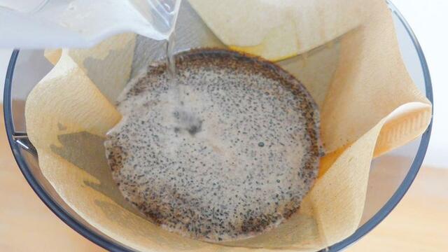 注ぎ始めると、すぐにフィルターからコーヒーが落ちてきて、40〜50秒ほどであっという間に抽出が完了しました。