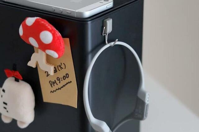 スチール製なので、フックをつけたりマグネットをつけたり、自分なりにアレンジもできますよ。