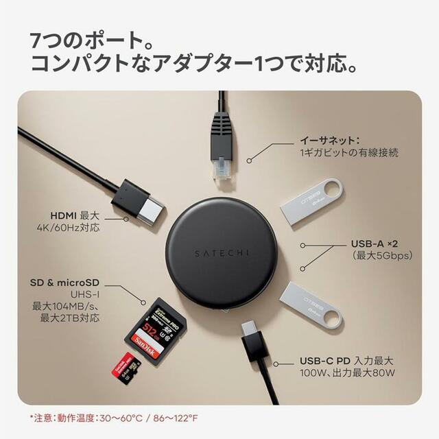 「PC・スマホの横でぶら下がるハブ」にうんざりしている方、2025年12月19日に発売したSatechi(サテチ)のOntheGoシリーズ「7-IN-1マルチポートアダプター」に切り替えましょう。